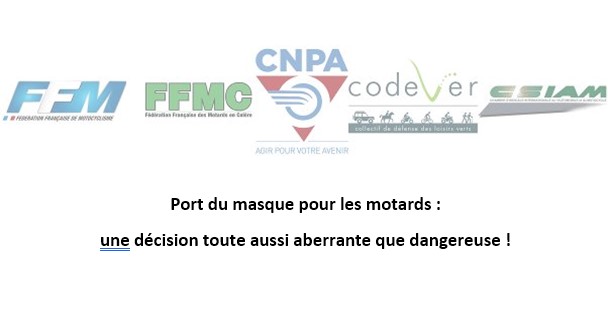 La Préfecture de police de Paris a pris le 27 août un arrêté préfectoral imposant le port d’un masque de protection aux utilisateurs de deux-roues motorisés (2RM) dans Paris et la petite couronne (Hauts de Seine, Seine Saint-Denis, Val de Marne). La FFM, la FFMC, la CSIAM, le CODEVER et le CNPA entendent dénoncer fermement le danger d’une telle mesure prise en l’absence de toute concertation.